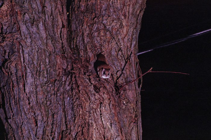 This picture was also made with a manual camera and flash. It's a bit out of focus, as it's kind of hard to focus a manual camera in the dark, but it shows the patagium spread out and the manner in which I keep them coming around! I should go through my pictures and find one with a squirrel flat on the tree hiding. They just flatten out against the tree and just about disappear.